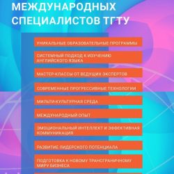 Реализуются на базе Центра языковой подготовки ТГТУ. Языковые курсы: «Английский с нуля», «Деловой иностранный язык», многоуровневая подготовка к сдаче международных экзаменов. Кроме того, возможно обучение на программе профессиональной переподготовки «Переводчик в сфере профессиональной коммуникации».