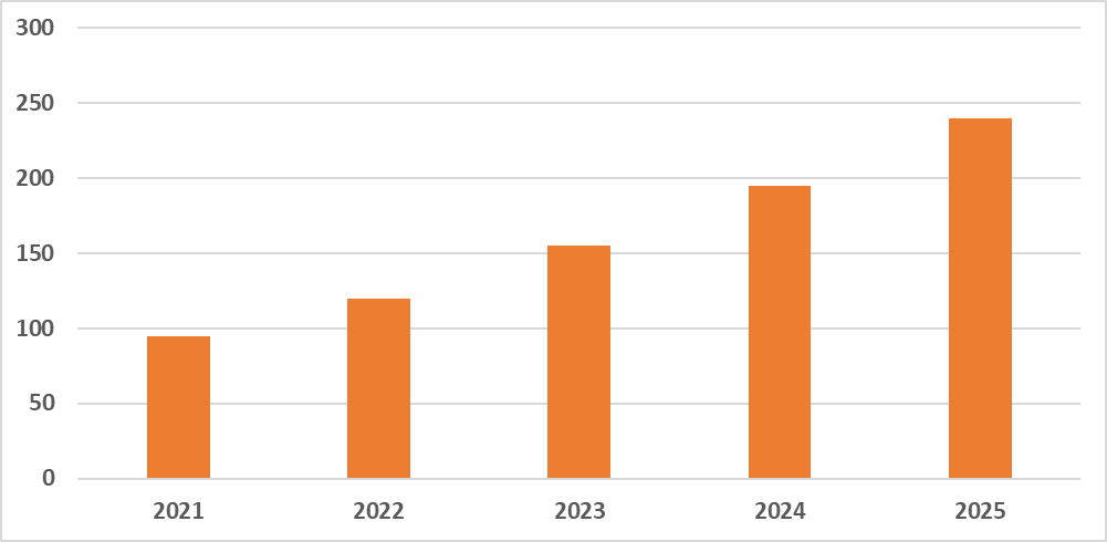 Как видно из графика, за последние 5 лет спрос на инженеров вырос примерно в 2,5 раза.